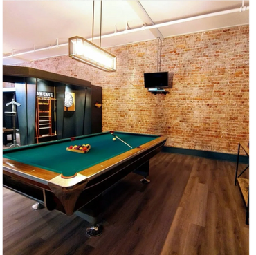 There is also a pool table, card table, dart board, and cable TV to keep everyone entertained until it's time to say,