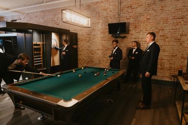 The men will feel like kings for the day in our spacious suite. There are 10 individual stations to hang suits, separate dressing rooms and a steamer to ensure everyone looks their best.